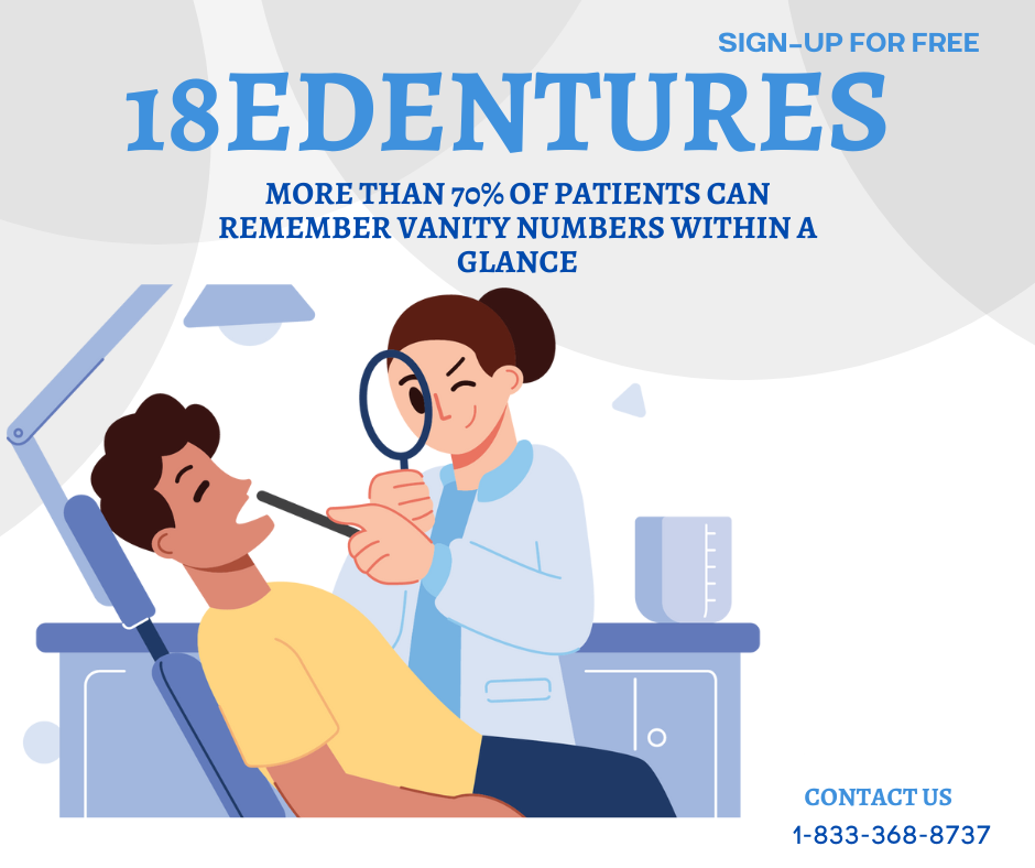 It has been decades since the vanity phone number is introduced to the market. Till now many denture dentists use this number to market their dental practice. Recently we conducted a survey and found out that patients can easily remember and recognize the brand phone number with in a glance. If we compare it with other social media marketing strategies then it is quite cheaper.