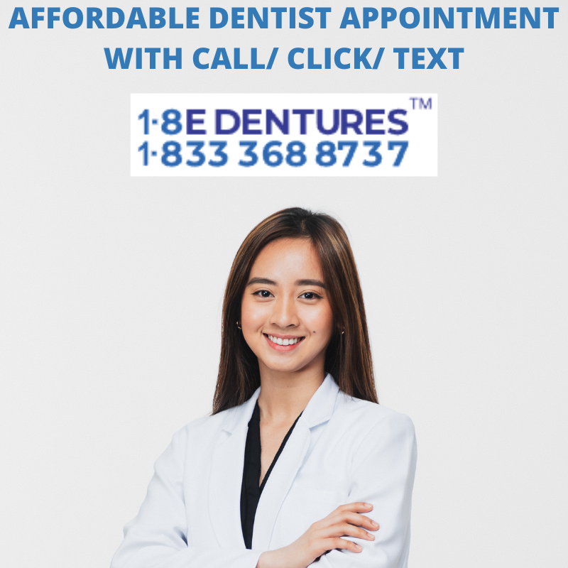 In case if you are suffering with any dental issue either it is simple dental problem or an emergency issue, just turn up to our website https://www.18edentures.com/ with single click or call 1-8 E DENTURES (1-833-368-8737) or text your 5-digit zip code to memorable toll free number 1-8 E DENTURES (1-833-368-8737) for easy, simple appointment booking process with the local specialized top-rated dentist within minutes at free of cost. Patients have to bear only the treatment charges which are affordable only. Patients can select the desired dentist based on their preference like language, gender, experience, specialization, location, Time and date. Both Patient and Dentist will receive the appointment notification through email or text for happy proceedings.